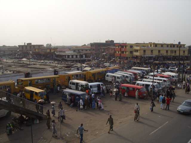 | Buses lined up waiting for passengers at Oshodi Bus-stop. |