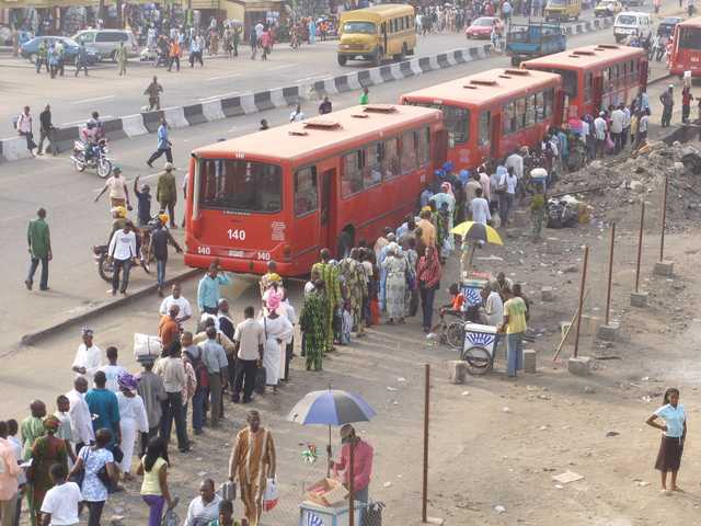 Commuters lining up to take Governor Raji Fashola's Bus Rapid Transport.